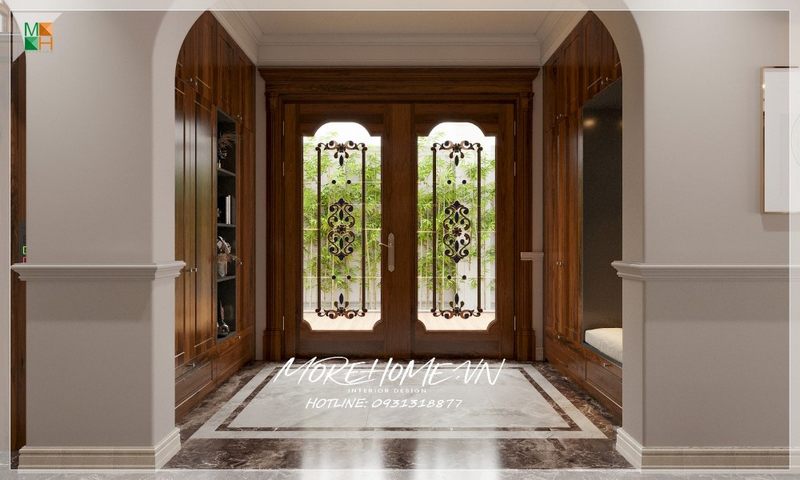 Thiết kế cửa gỗ 2 cánh kính cho biệt thự, nhà phố sang trọng bằng gỗ óc chó tự nhiên