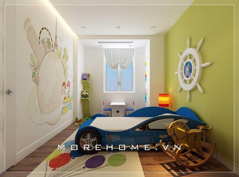 Mẫu giường ngủ bé trai gỗ công nghiệp được thiết kế theo kiểu dáng ô tô độc đáo giúp con yêu có không gian sống riêng của mình.